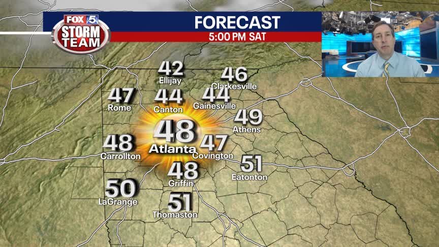 As expected, the rain has moved out and the clouds are trying to move out too. A mild early evening will cool into the 30s overnight. A mix of sun and clouds for Saturday with highs in the 40s. Here is the latest outlook.