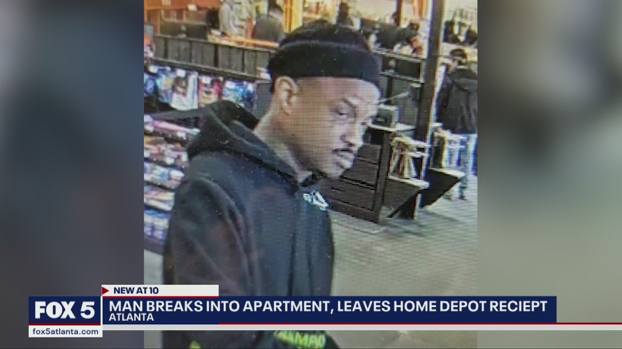 Police are searching for a man who broke into an Atlanta apartment and left behind Home Depot receipts