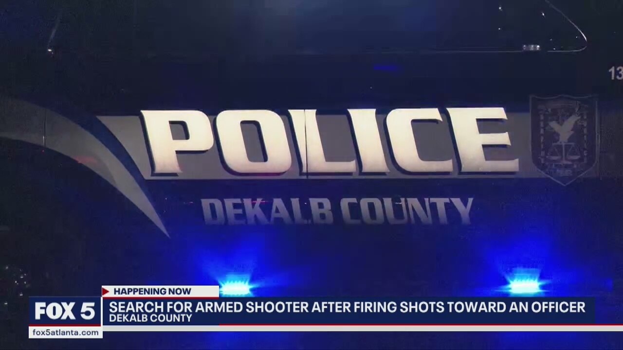 Police are searching for a shooter who fired shots towards a DeKalb County officer