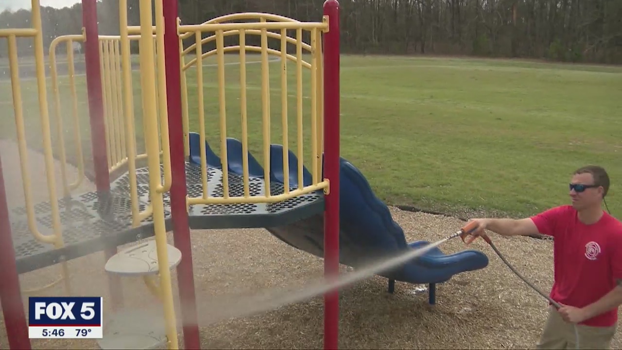 Tyrone firefighters are helping to keep playground equipment COVID-19 free