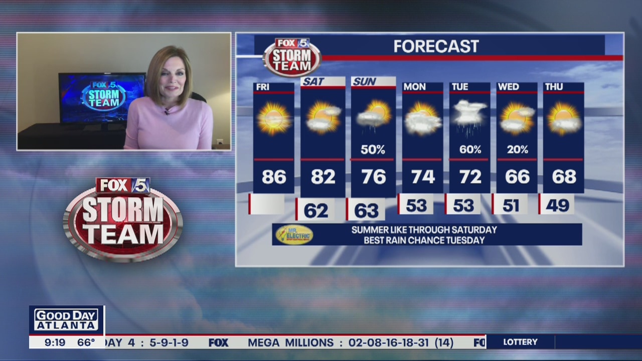 Summer like through Saturday with the best chance of rain on Tuesday.