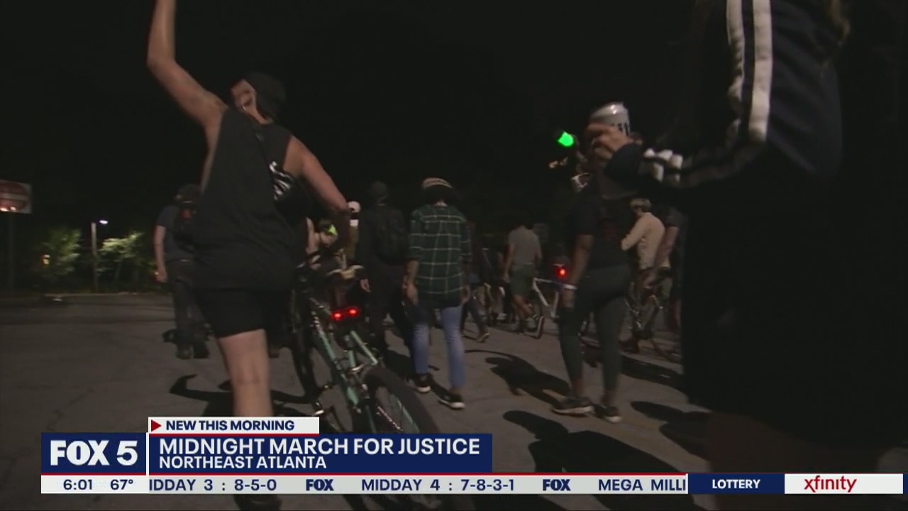 Protesters came together under the night sky for a midnight march in Inman Park.