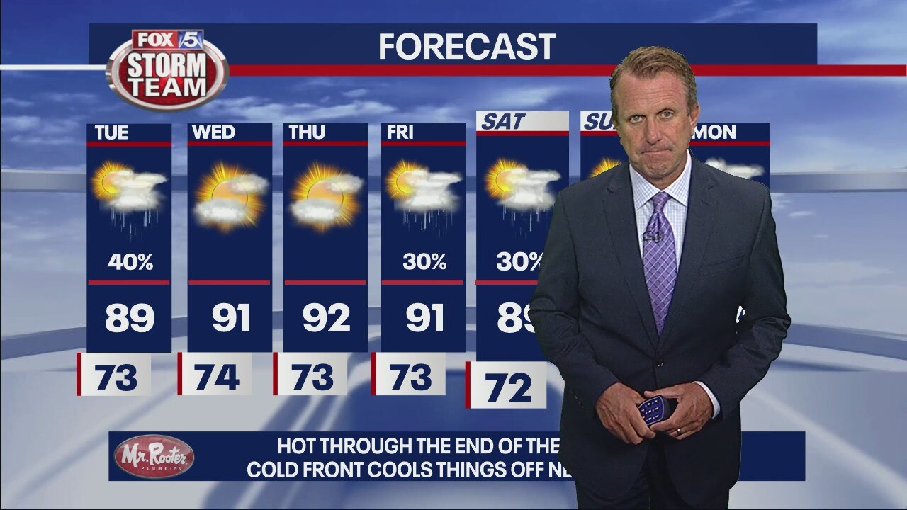 Scattered showers and t-showers will continue later this evening, and then another round will develop on Tuesday.