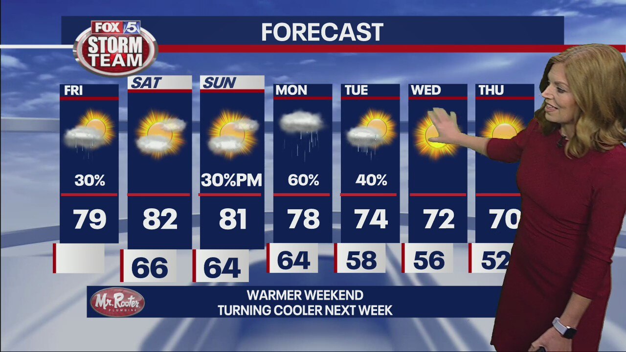Warmer weekend. Turning cooler next week.