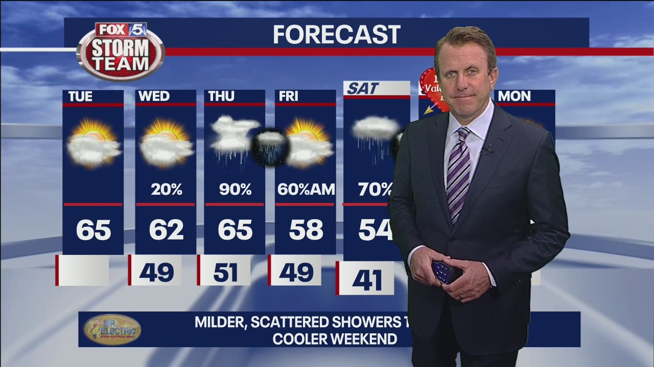 Sunshine will break out this afternoon boosting temperatures into the mid 60's.
