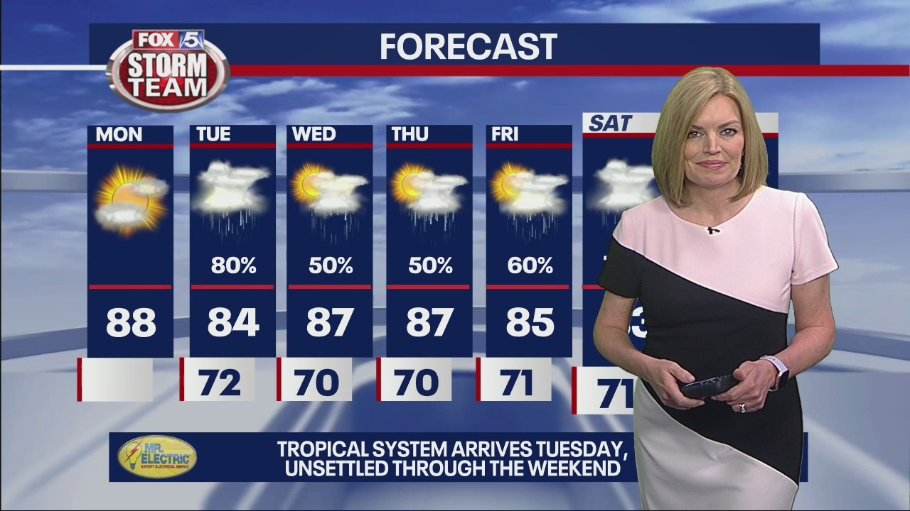 Enjoy this one quiet, summer day because tropical rain is in Tuesday's forecast. Today will be partly cloudy, humid, and hot.