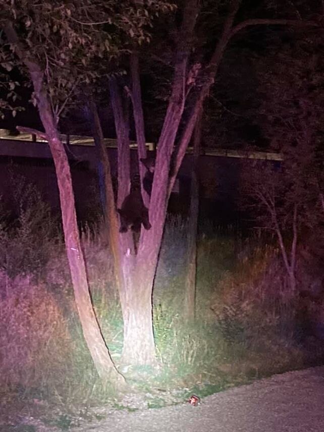 Footage released by the sheriff?s department on August 8 shows the deputy approaching the car while the bear is stuck inside as her two cubs watch nearby. Credit: Garfield County Sheriff's Office - Colorado via Storyful