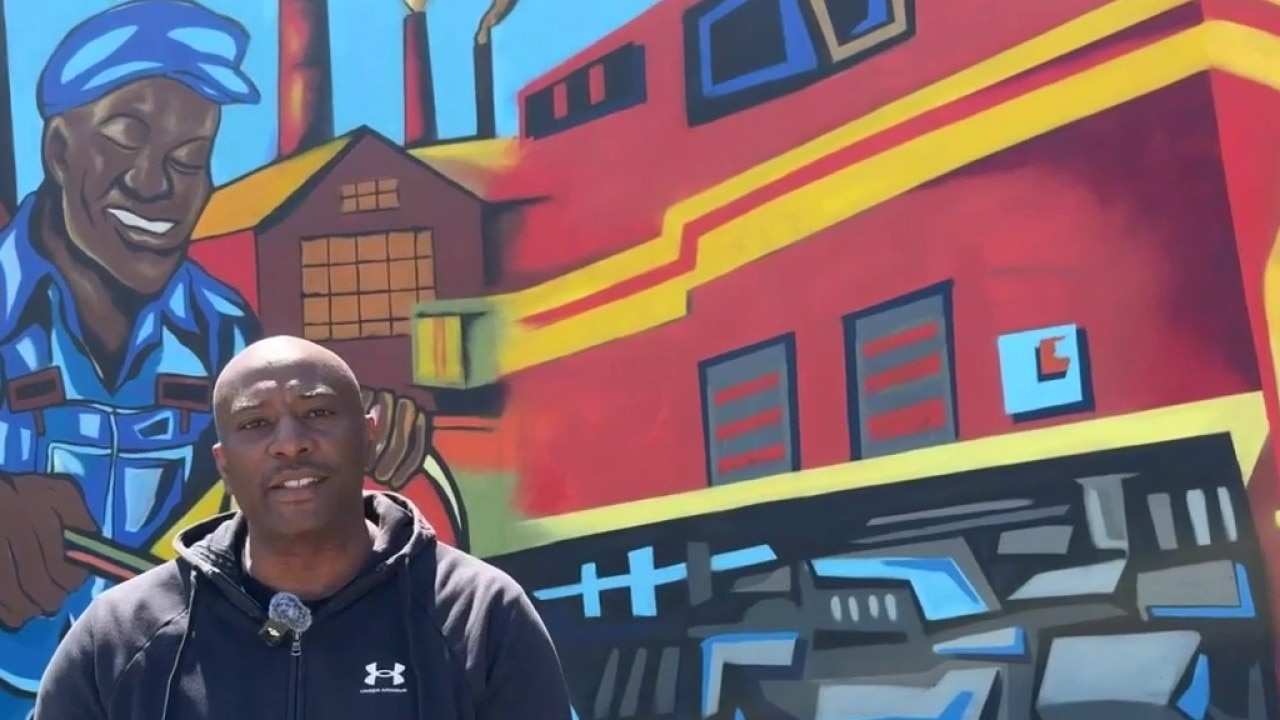 Acclaimed artist Corey Barksdale is working to transform a local intersection in West Midtown ahead of the world cup. The massive mural celebrates the neighborhood's industrial roots and cultural legacy. Our Chris Rosenthal speaks with the artist.