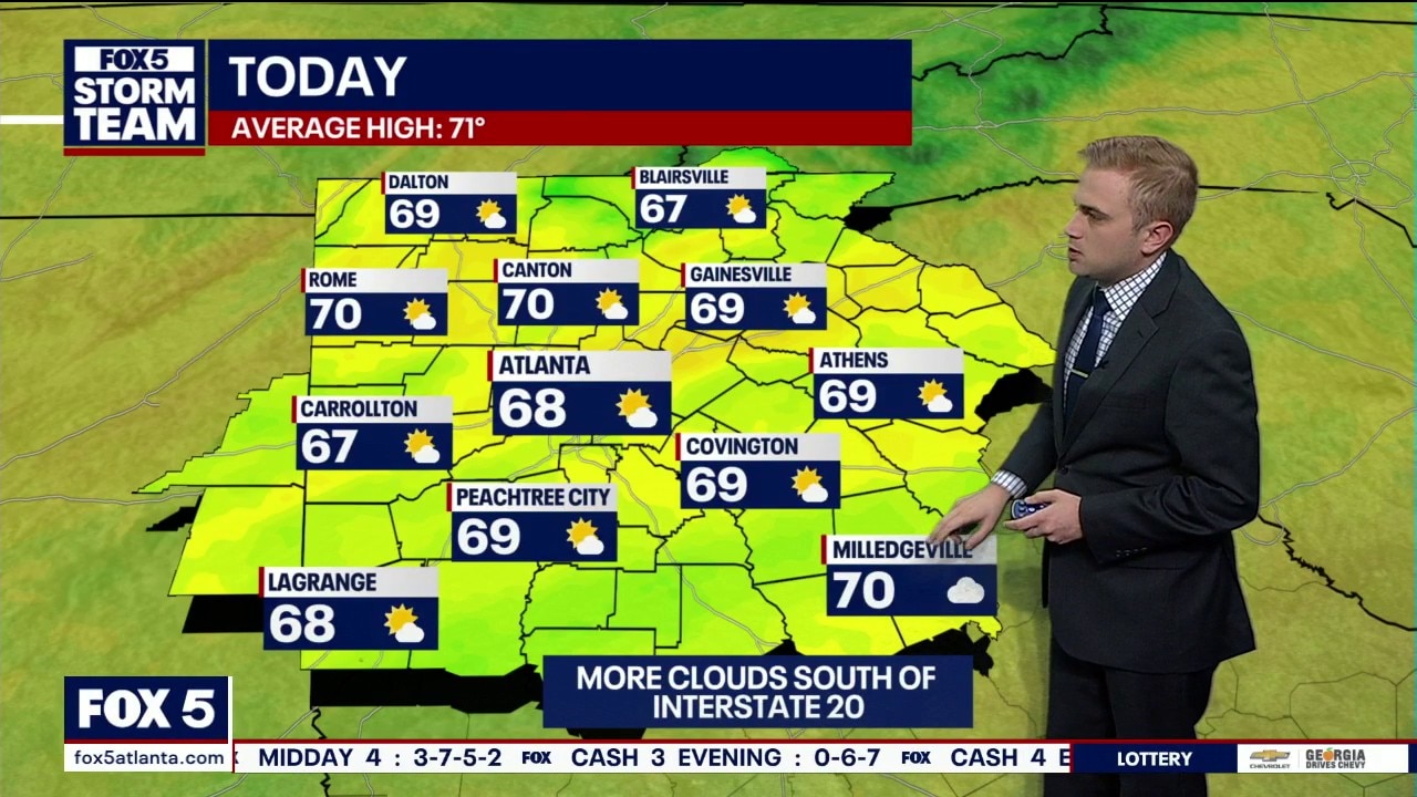 Monday morning is getting off to a cooler start than yesterday. Partly cloudy today with highs in the upper 60s and low 70s.