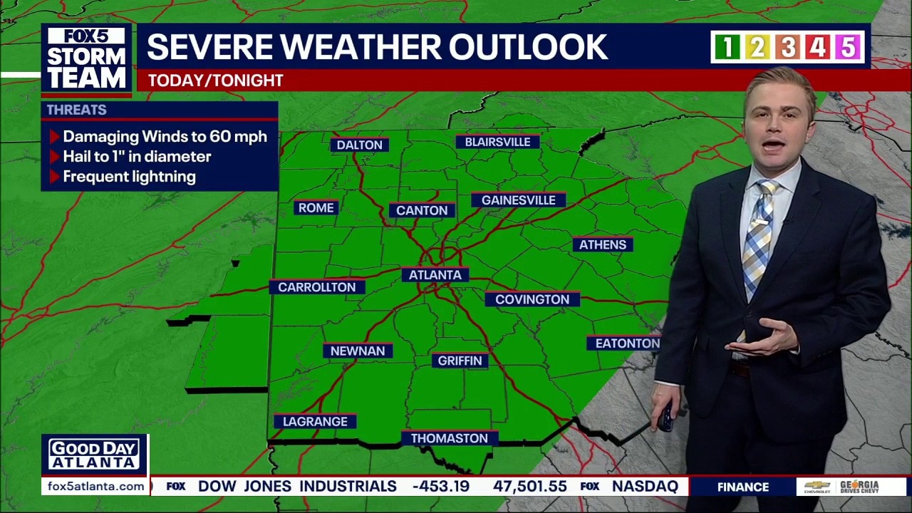 A level 1 threat for severe storms is in place for the afternoon and evening.