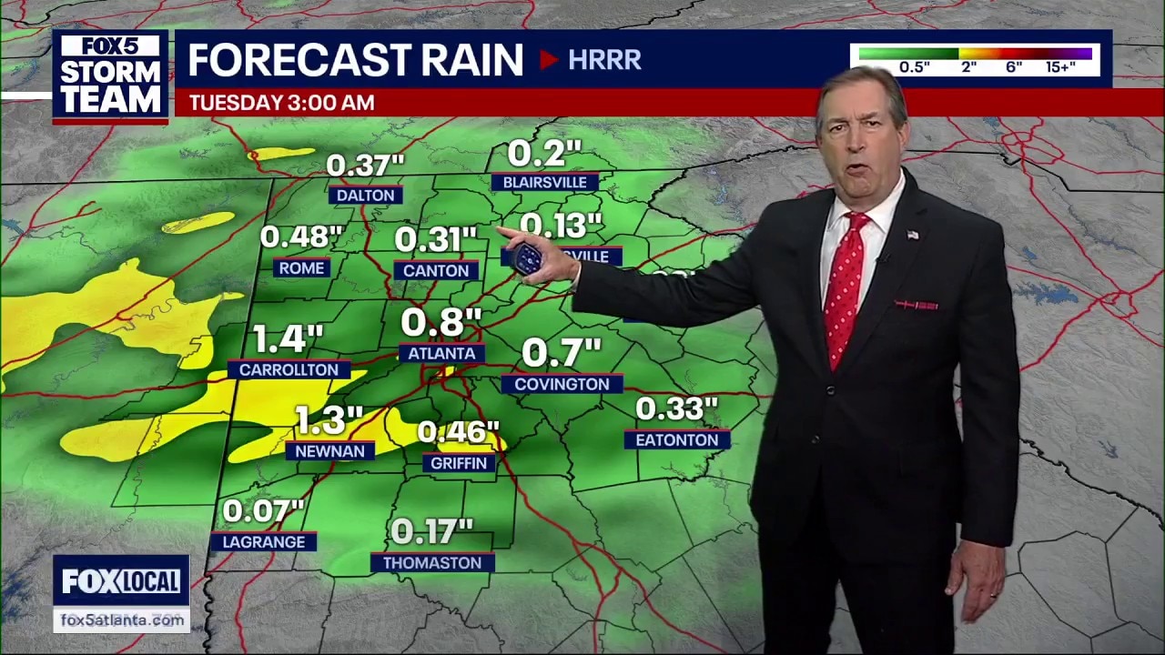 North Georgia faces a rainy Monday night with lingering showers before temperatures soar toward a record-breaking 80-degree high by midweek.