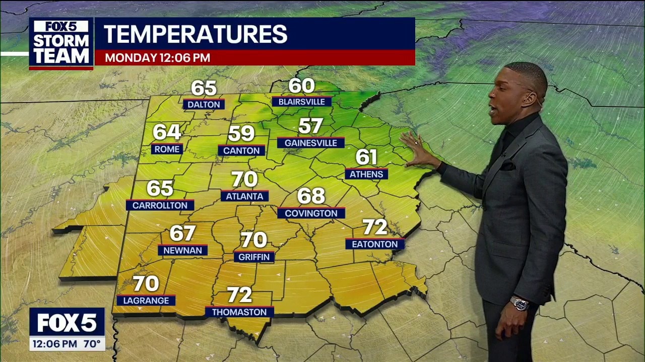 Partly cloudy skies with temps in the upper 60s and low 70s. Humidity at 41% at midday.