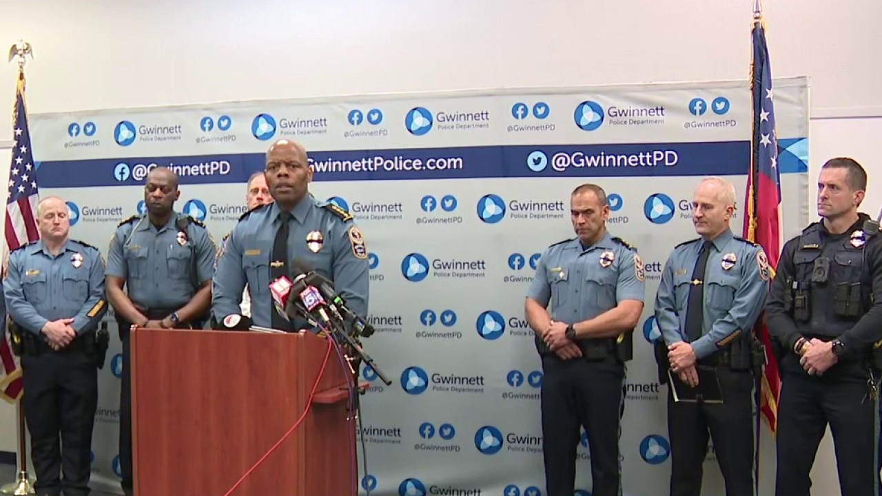 The Gwinnett County Police Department updated the public on a shooting that killed one police officer while injuring another officer and the suspect. Police said the shooting began as a fraud call to a hotel.