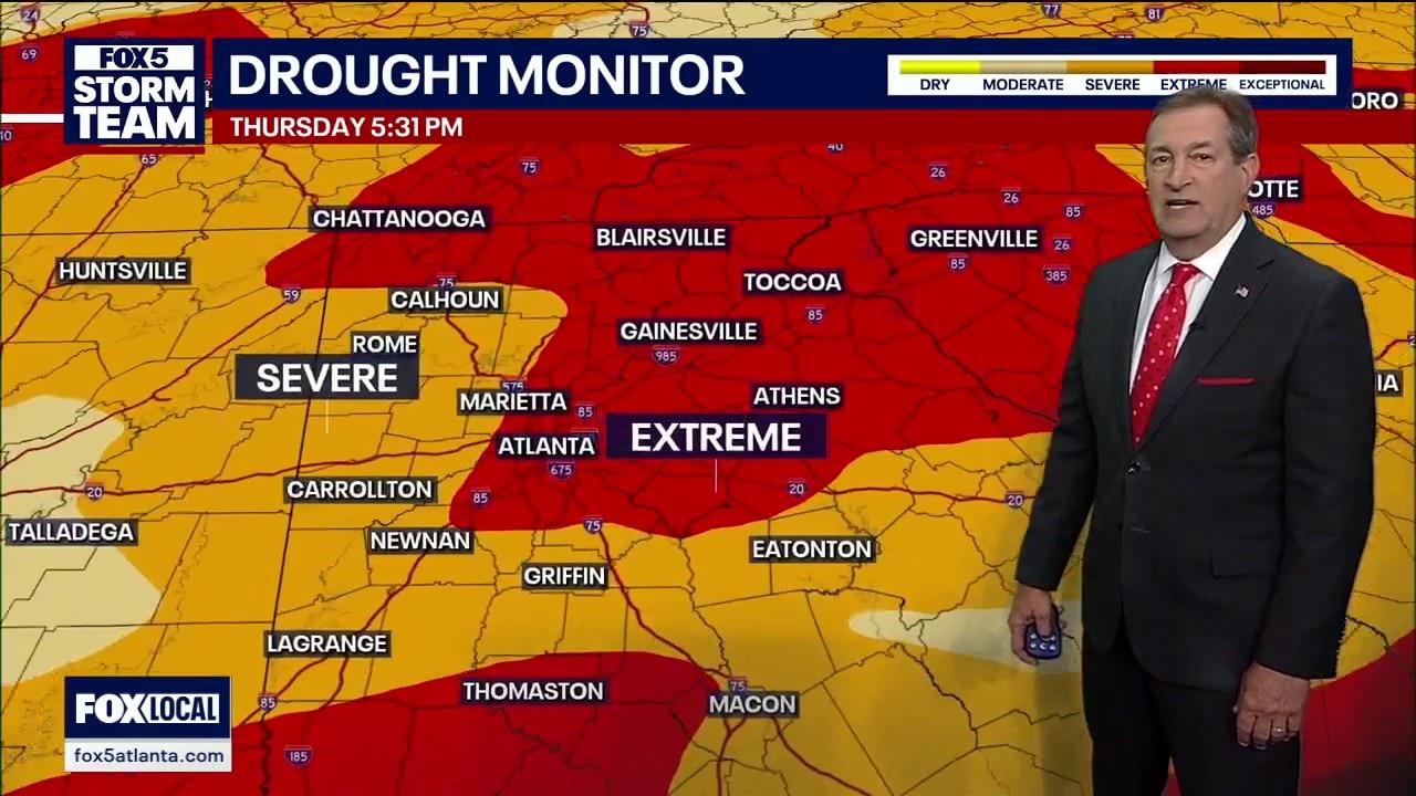 Smoke from South Georgia wildfires is moving into the metro area tonight as the region battles an extreme drought. While Friday stays dry and warm, a "mixed bag" of random showers and thunderstorms is expected to pepper the state starting Saturday afternoon.