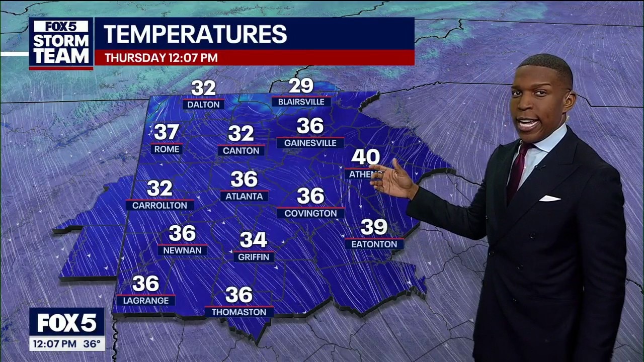 Thursday started with snow flurries for some people in North Georgia and noticeably colder temps than Wednesday. Highs today will be in mid to high 30s to low 40s.