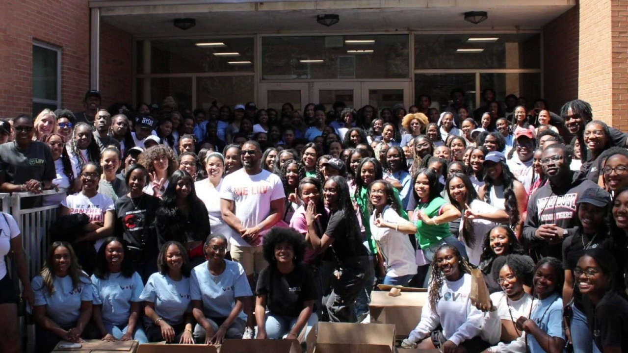 LOV stands for Lifting Our Voices, an organization founded by Noah McQueen from his basement when he was a recent Morehouse College graduate. It has grown into a major service organization dedicated to supporting student-led service projects around the country.