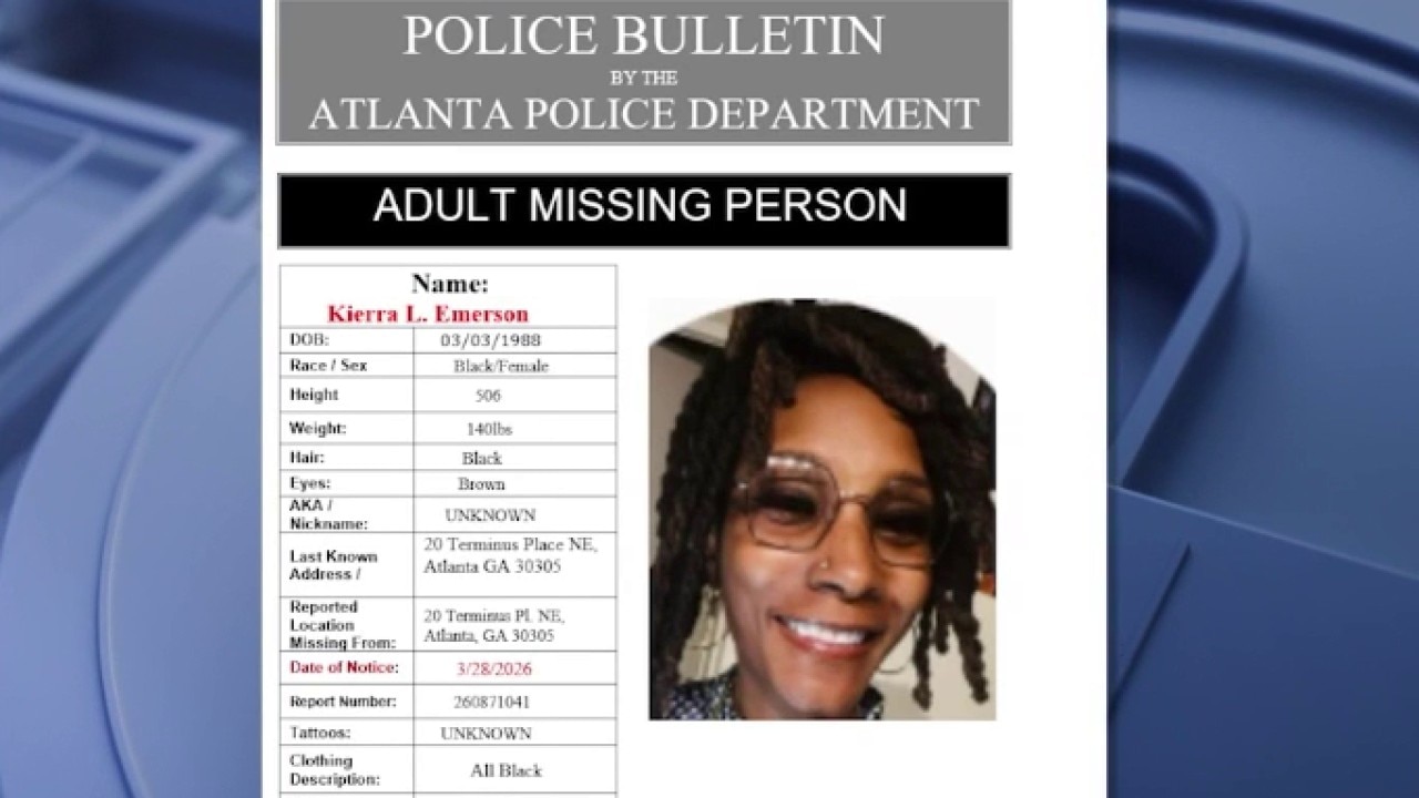 Atlanta Police are searching for 37-year-old Kierra Emerson, who has not been seen or heard from since March 26. Family members told officers Emerson said she was "leaving forever" during their last contact. Authorities conducted a welfare check at her Terminus Place apartment but did not find her. Police say Emerson suffers from depression and may be armed. She is believed to be driving a white 2026 Honda with Georgia tag RHN8992. Anyone with information is asked to call 911.O