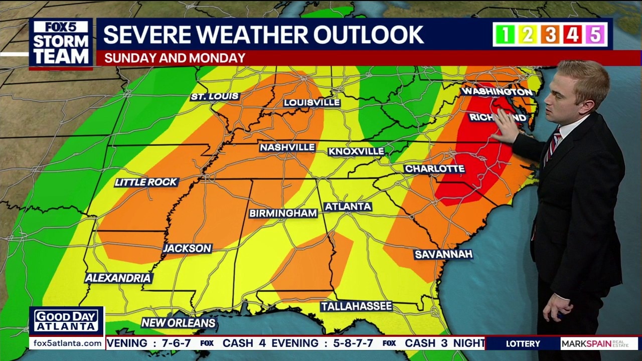 FOX 5 Storm Team Meteorologist Alex Forbes says a level 2 threat for severe storms will be around Monday morning.
