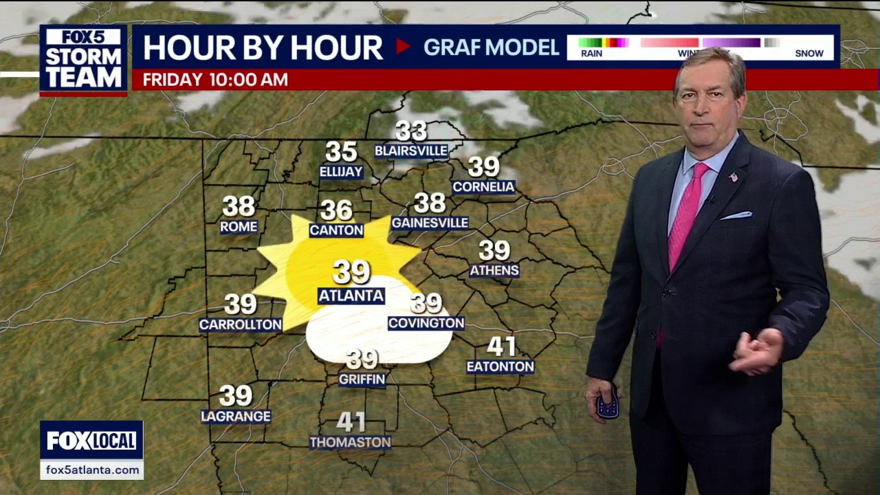 After a rainy morning, North Georgia is experiencing a sharp clearing trend driven by a potent northwest wind that is ushering in a "chilling" arctic airmass.