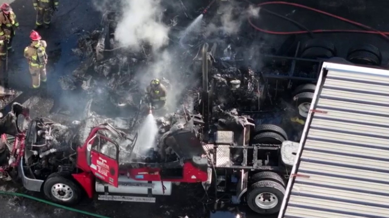 Firefighters are battled a large-scale blaze at a warehouse in Forest Park, where multiple tractor-trailers had caught fire Thursday morning. Heavy black smoke from the scene is visible for miles across metro Atlanta, prompting a massive emergency response. The cause of the fires is currently under investigation.