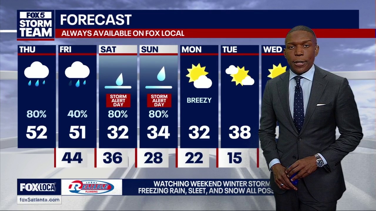 Thursday's high temp is expected to be in the low 50s with an 80% chance of rain. Similar weather is expected Friday during the day before conditions begin to worsen.