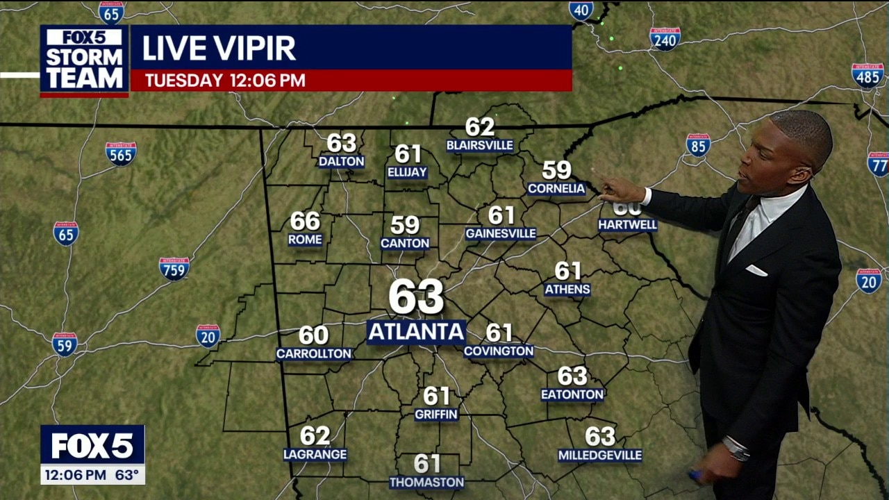 Temps are already in the low to mid 60s and are expected to rise through the afternoon. Rain doesn't return until Thursday or Friday.