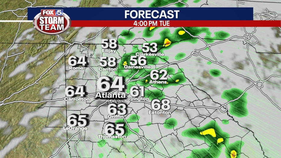 ATLANTA - Storms will be moving through Georgia on Tuesday, bringing rainy and windy weather.
