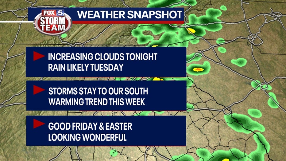 The FOX 5 Storm Team is tracking warmer temperatures as Easter Sunday arrives.