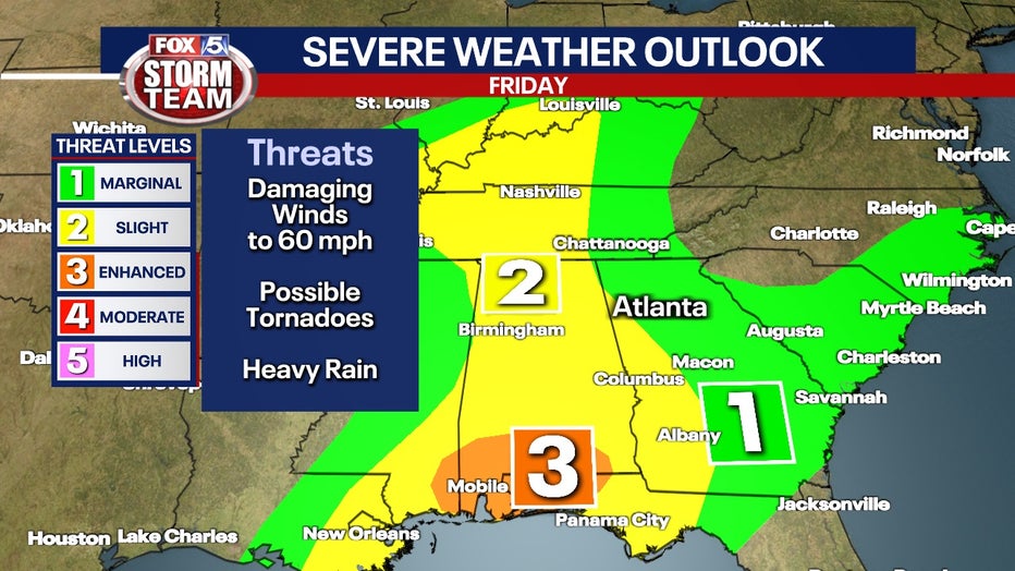 ATLANTA - Georgians will want to be weather aware on Friday as another round of storms move through bringing an increased severe weather risk.