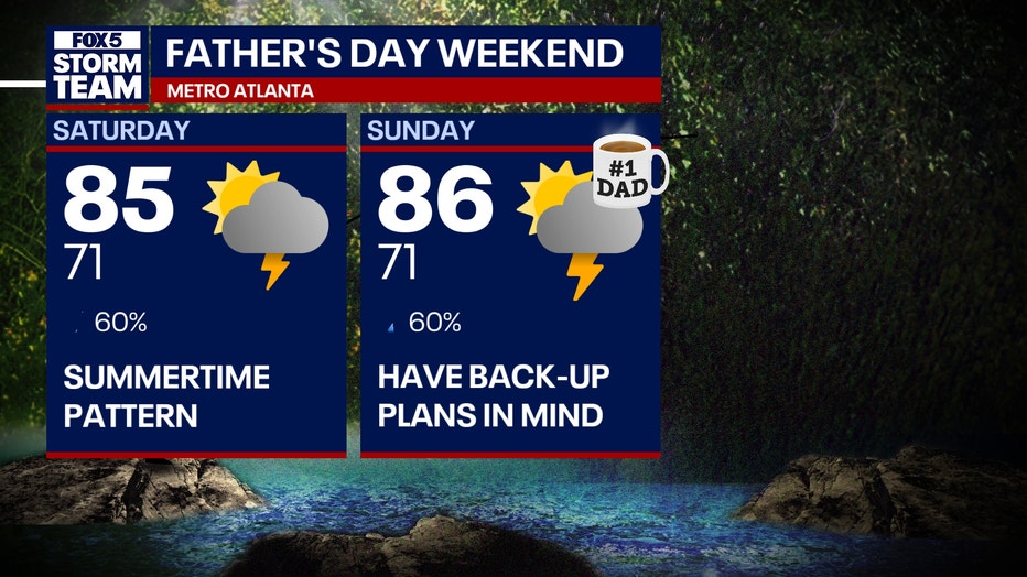 ATLANTA - North Georgia is heading into a soggy stretch this Father’s Day weekend, with repeated rounds of showers and thunderstorms forecast through early next week. But while rain chances are high, forecasters say it won’t be a total washout—and early mornings may offer the best chance for outdoor plans.