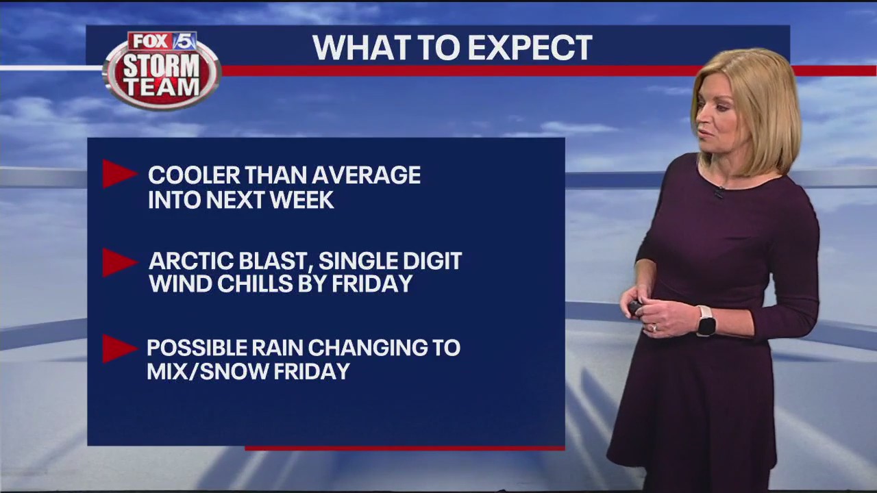 Temperatures will dip below freezing next week leading into Christmas. There's a chance of a wintry mix on Friday.