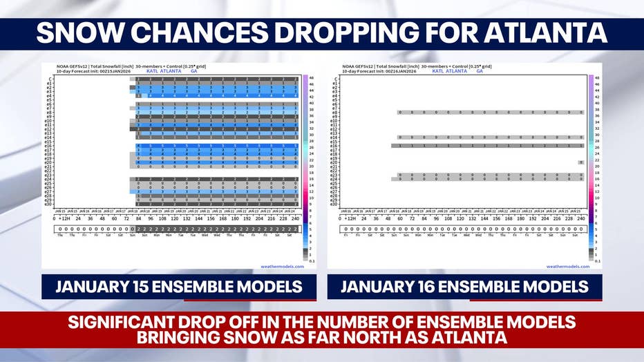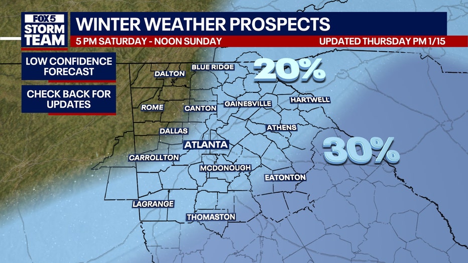 "We’ve got a lot of things to kind of come together before all that happens," Chandley said. "If snow does develop, it is likely to be impacting areas south of Atlanta, versus a North Georgia impact."
