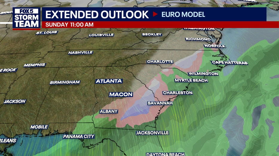 Confidence in the Sunday forecast remains low, but latest data suggests a shift toward a potential winter event. Forecasters noted that about 40 percent of recent model simulations show a swath of winter weather across southern and central Georgia, with 20 percent bringing that threat into North Georgia.